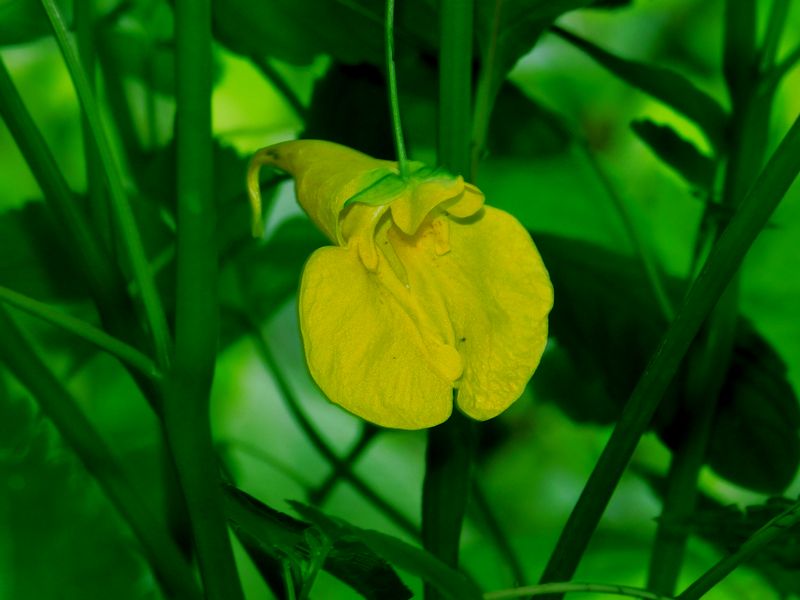 -- キツリフネの花はまだ少ない。