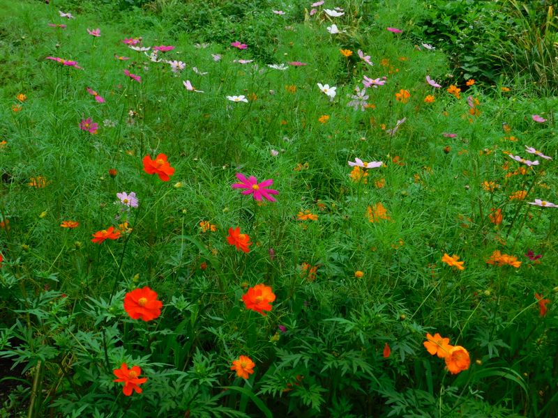 -- コスモス畑にコスモスとキバナコスモス。