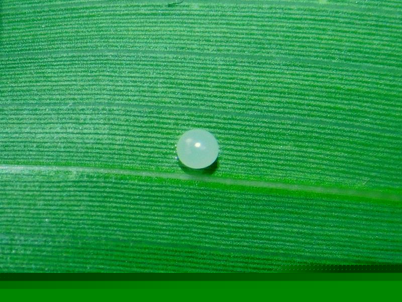 -- クローズアップ、クロヒカゲの卵:ほぼ真球。