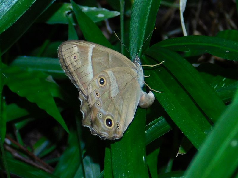 -- ヒカゲチョウの産卵。