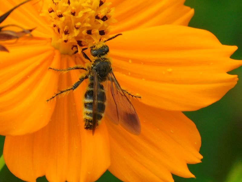 -- 花粉まみれ:ヒメハラナガツチバチ。