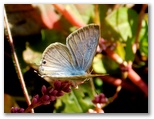 2020年11月13日(金) ◆所用で外出した帰り道、四季の森公園に行った。この秋晴れで真っ直ぐ帰宅することは、とうていできない。◆北口に行くと、職員らしい人々が「アサギマダラを見たい?」と話しているのを小耳にはさんだ。横浜市内では、あまり見ない蝶である。行くと、新しくできた木製土止めの内側に、草にとまって休むアサギマダラがいた。左右の後翅がボロボロ、右の触角は途中まで。◆アサギマダラは長旅の途中かもしれないが、もしかしたら横浜市内、あるいは四季の森公園で繁殖行動を完了した可能性もある。ここで風の当たらない場所を見つけ、最後の時を待っているのかもしれない。◆アサギマダラ以外の動植物は、常連さんたちばかりだが、それぞれに季節感もあって、出会うとうれしい。キタキチョウ、ムラサキシジミ、ウラギンシジミなど、今見る新鮮そうな蝶のほとんどは、このまま成虫で冬越しする。来春に再会したら、越冬の話を聞かせてもらいたいものだと思う。◆今はケヤキの黄葉が美しい。色は黄色〜黄橙。午後遅く、里山側に西日が当たるようになると、その輝く木々がはす池に映る。さくらの谷の四季桜は満開見頃。モミジ類は、まだ緑色だった。