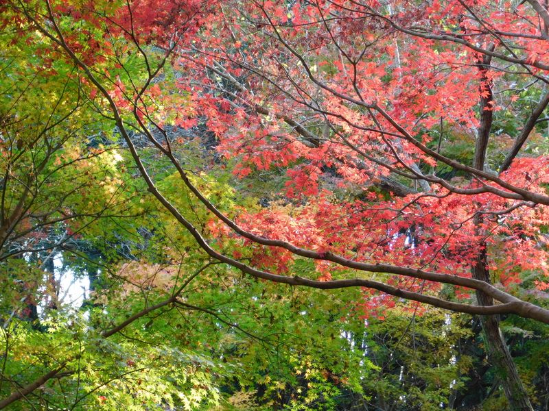 -- 紅葉と緑葉のモミジ。