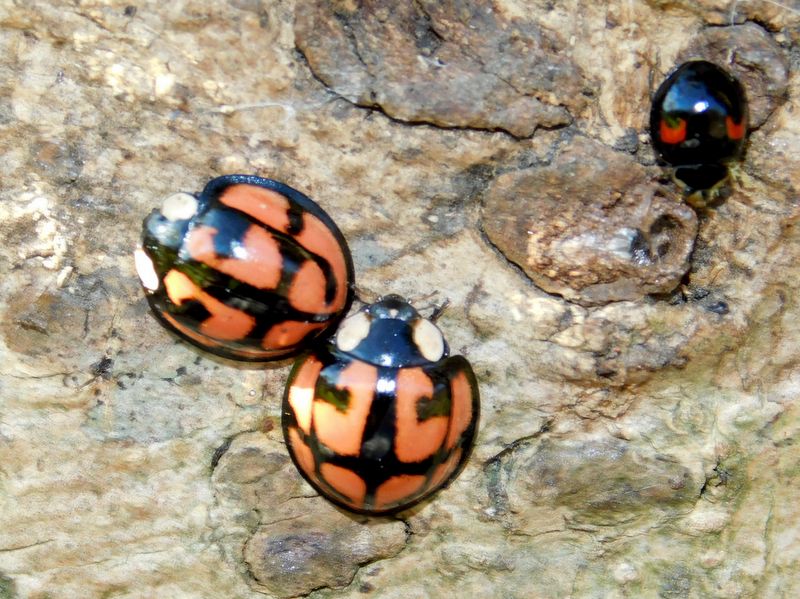 -- カメノコテントウ2頭とナミテントウ。
