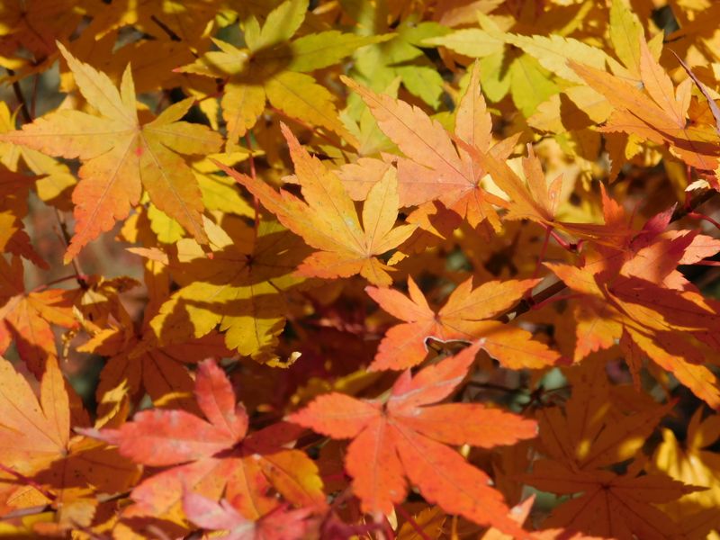 -- しょうぶ園入口の石橋のモミジ。