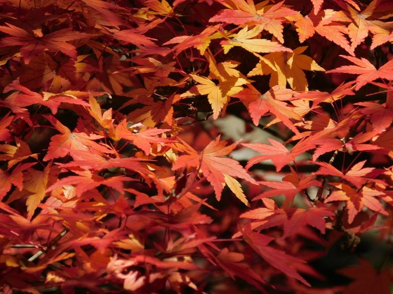 -- 順光で鮮やかなモミジ@連絡通路への坂道。