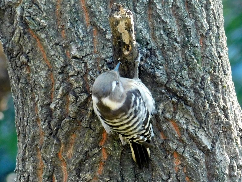 -- コゲラ:右趾で枝を掴む。