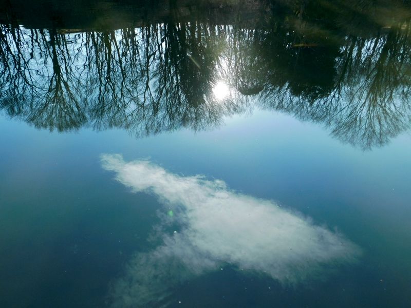 -- はす池に映った里山花壇。