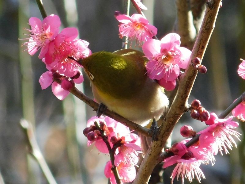 -- メジロと寒紅梅:その1.