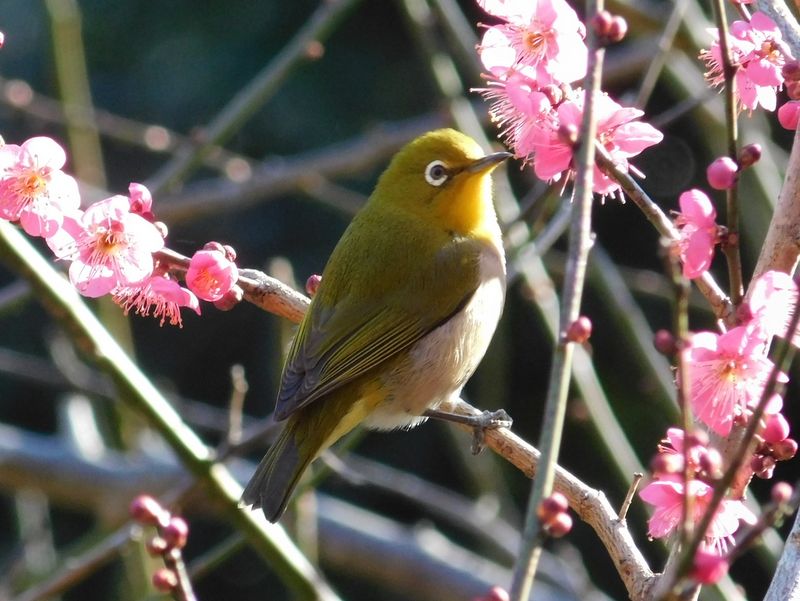 -- メジロと寒紅梅:その3.
