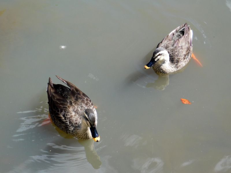-- 仲の良さそうなカルガモのペア@はす池.