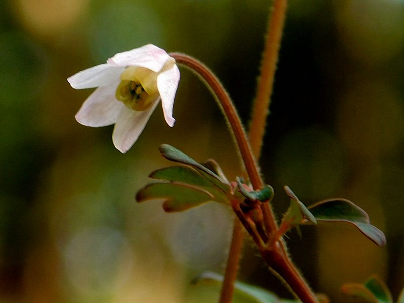 -- ヒメウズの花:花弁が黄色で雌しべが小さい。