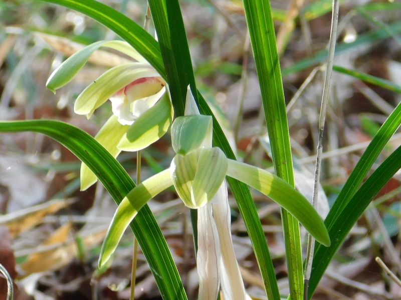 -- シュンラン:茎が白っぽい。