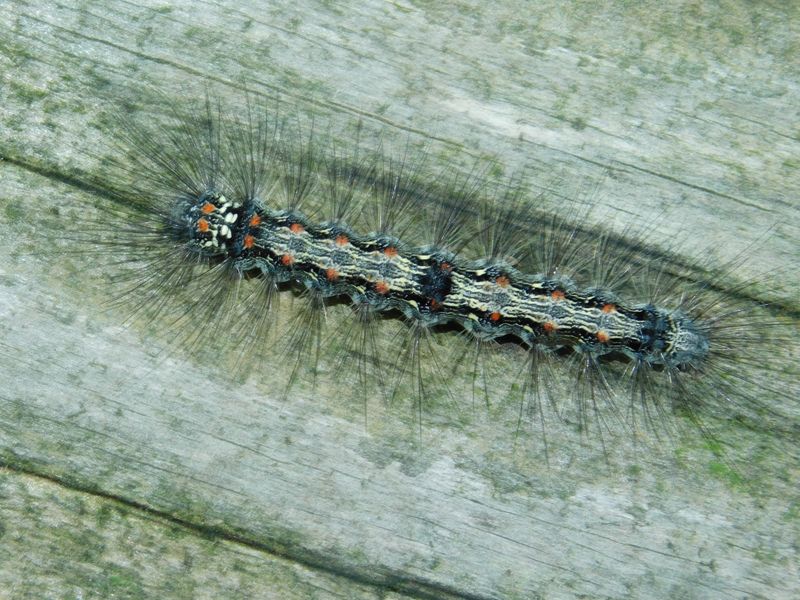 -- ヨツボシホソバの幼虫:左が頭。