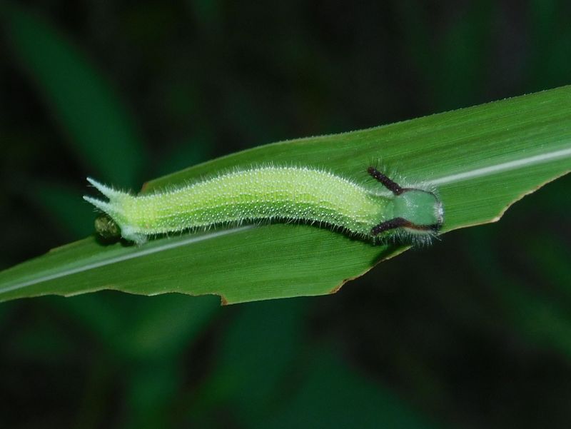 -- クロコノマチョウの幼虫が糞を出した。