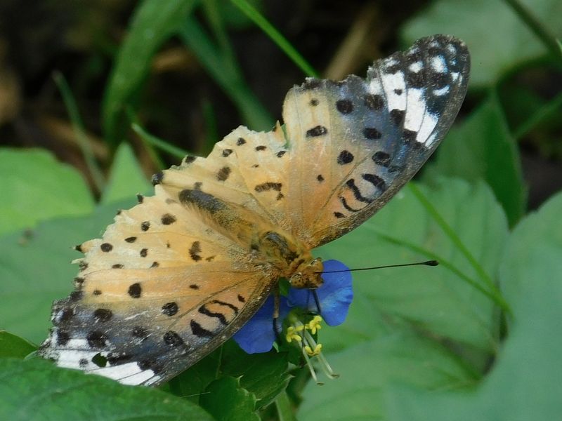 -- ツマグロヒョウモン♀:老個体@ツユクサ