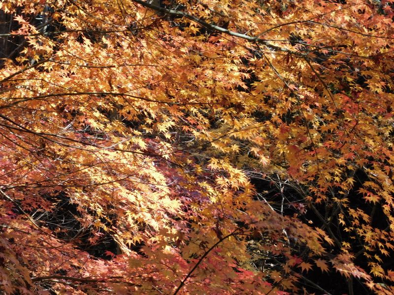 -- 「上の池」の少し上流の紅葉。