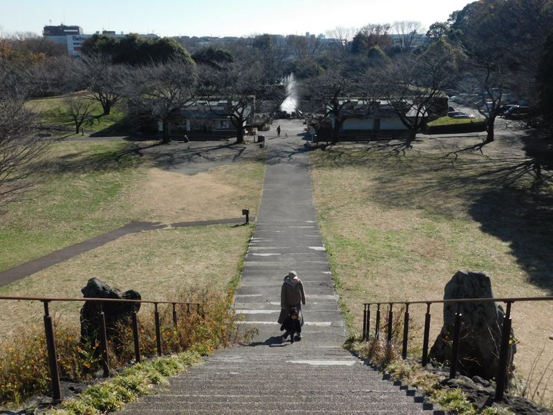 -- 展望台より、展望広場と噴水を望む。