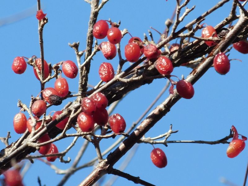 -- サンシュユの実がシワシワに。