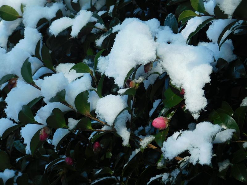 -- 椿や山茶花には雪が似合う。9:39