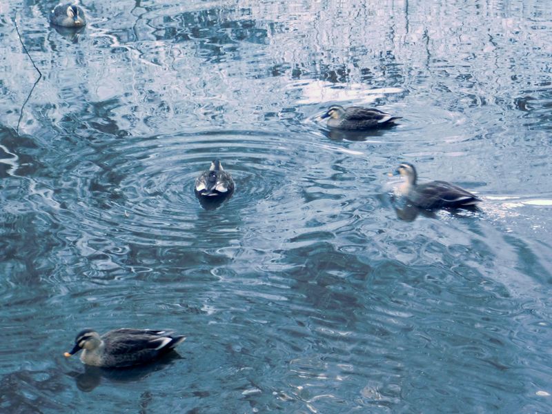 -- カルガモ5羽。8:34