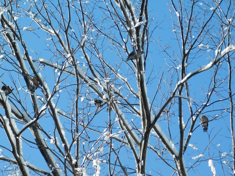 -- 高い木に、キジバト6羽。