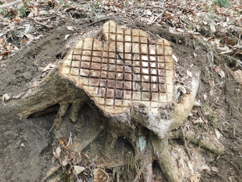 -- シラカシの切り株:燻蒸の覆いが外されていた。