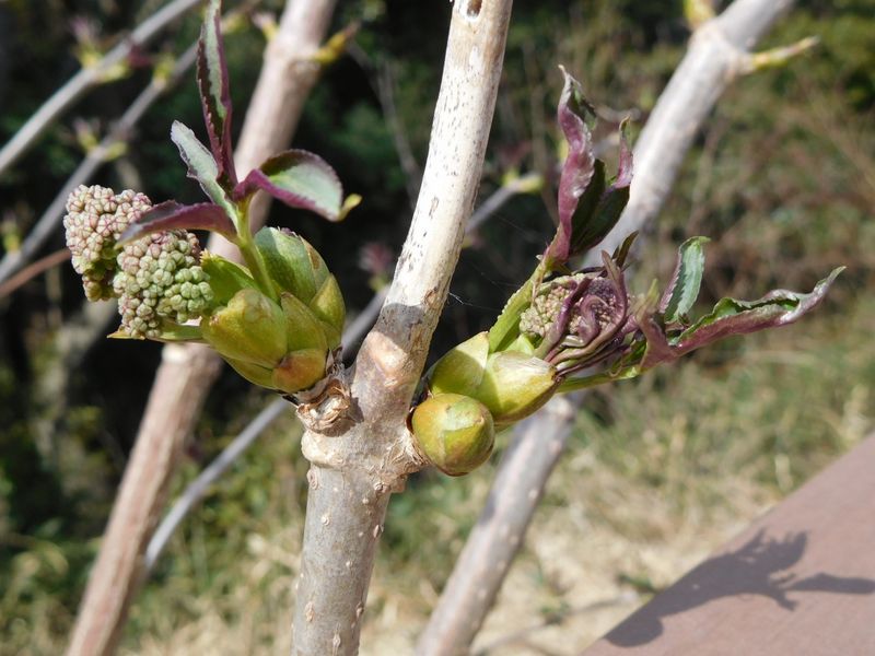 -- ニワトコの新芽と花蕾@展望台