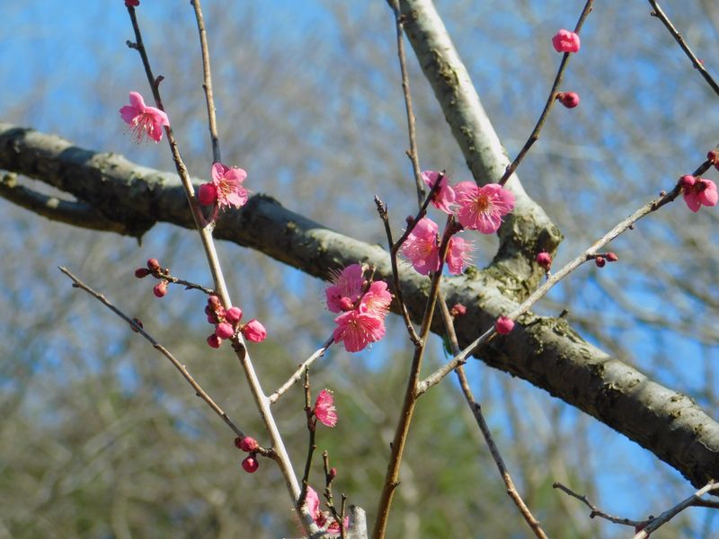 -- 寒紅梅はチラホラ咲き。