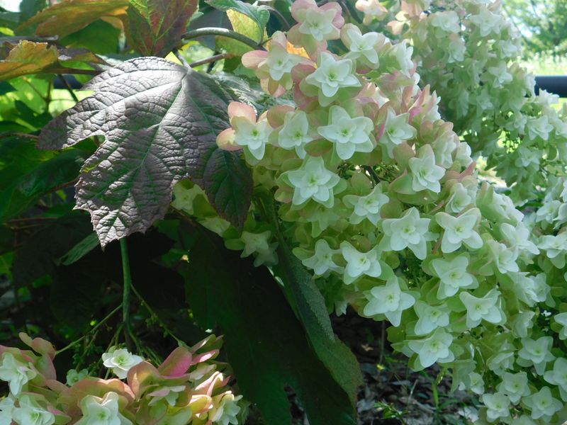 -- カシワバアジサイの葉と花。