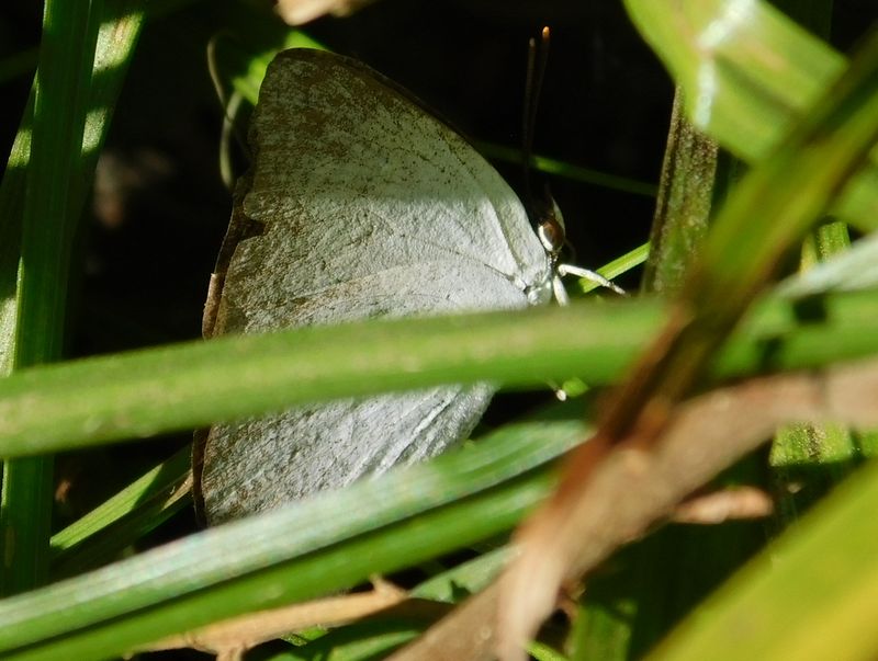-- 草むらに潜って休む、ウラギンシジミ♂。