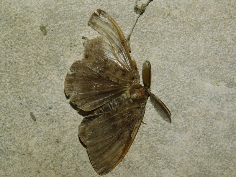 -- 左前翅がクモの糸に捕まった、マイマイガ♂