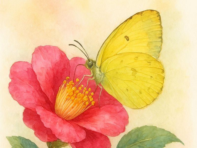 -- 逃げられたので、AIに描かせたキタキチョウ@サザンカ