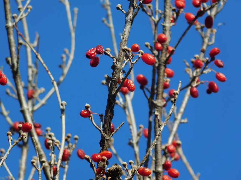 -- サンシュユの実にシワ。