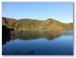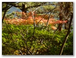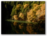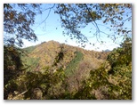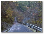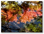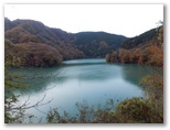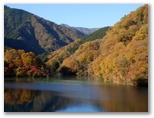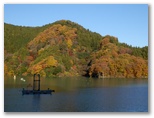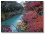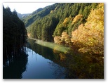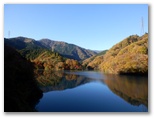 本厚木駅前で、朝一番の宮ヶ瀬行きバスに乗り込みました。乗客の大部分が登山姿です。煤ヶ谷、土山峠、三叉路のそれぞれで、6,7名が下車。終点まで乗った3名は皆、早戸川林道に進みました。この林道は湖畔の等高線そのままに、くねくねとカーブする長ったらしい道です。でも今は紅葉が目を楽しませてくれるので、飽くことがありません。特に、汁垂橋(しるたればし)と金沢橋(かねさわばし)から眺める紅葉は、急ぐ足もつい止まってしまうほどの美しさでした。