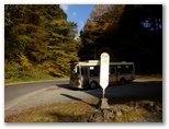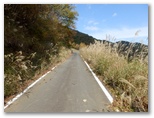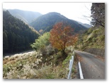 きょうのコースの前半が終わりました。これより、舗装された立派な車道をテクテク、金波美トンネルまで歩きます。やや長ったらしい道ですが、眺望は悪くありません。安寺沢両岸の山なみ、安寺沢の集落、かつての秋山村の秋の色を楽しみながら、徐々に高度を稼いで行きます。でも4年前、旧秋山村のデン笠を歩いた時は、山のモミジがもっと鮮やかな赤でした。まだ早すぎるのかな? でも、落葉がかなり進んでいます。この秋の紅葉は、こんなものなのかも知れません。