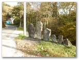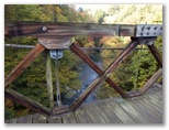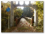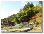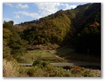 自転車と歩行者専用の吊橋、前川橋を渡ります。橋の上から秋山川を見下ろすと、赤や黄色に色づいた木々と川の流れが、小学校で歌った「もみじ」を想わせました。その先は秋山川の支流、綱子川に沿って、車1台が通れる幅の道を進みます。「さつき学園」以外、建物のない道をテクテク。山あいの村、綱子の日照時間は少ないんだろうな、とか思いながら、さほど飽きることもなく歩き続け、いつの間にか綱子の里に入っていました。郷愁を誘う風景がいっぱいの人里です。