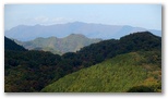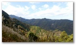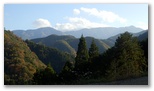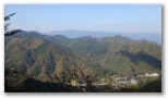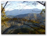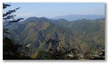 まず、特徴ある大岳山を容易に同定できます。これを基点に御前山と三頭山を見つけ、合わせて奥多摩三山。三頭山から右手はるかに奥高尾へと続く笹尾根、その手前に権現山や雨降山を擁する権現山稜。そのまた手前には矢平山とコウモリ形の高柄山を擁する秋山山稜、そのまた手前、大地峠から派生する山なみにはデン笠や金比羅山。ここから俯瞰すると「笠」や「金」の形に見えません。これから冬になれば、もっと遠くの山々まで見えるようになるでしょう。
