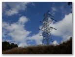 まず、きょう歩く金剛山と阿夫利山とに目が行きます。西に御牧戸山、東に峰山、石老山、やや遠くに権現山稜と奥多摩三山。ただこの展望地は、評価が分かれるかも知れません。送電線を目障りに思う人もいるでしょう。私は、奥深くカテナリー曲線(懸垂曲線)を描く送電線が好きです。送電線に目を走らせれば、猫バスのように、はるか彼方まで一瞬に駆け抜けて行けそうな気分にもなります。電力は多くの工場や家庭に届き、光、力、音、熱、風などに変わるでしょう。