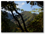 さて、ハイキングコースは、黄葉がきれいでした。最初の小ピークから下るところは、短い区間ですが、注意を促すテープやトラロープがあります。慎重に行きましょう。高見山(710m+)への登りは自然林がとても美しく、登る辛さが全くありませんでした。山頂に慎ましい山名標があります。これを見て、ハワイ出身の力士を久しぶりに思い出しました。展望はありません。でもその3分ほど先、素晴らしい展望地があるではありませんか。「おおぅ」思わず声を上げました。