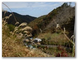 秋山温泉16:30発の送迎バスを利用するために、15:00までに温泉に到着することとし、ここから逆算して、藤野駅8:00発の奥牧野行きに乗りました。バスはやまなみ温泉で小学生たちを降ろすと、私一人を乗せて奥牧野へ。終点で下車するまで、すべて順調でした。ところが、歩き始めて1分足らずの分岐点で秋山川の吊橋に下りることをド忘れ。県道を一古沢まで歩いてしまいました。金比羅山が見えて、ようやく間違いに気づき、Uターン。15分のタイムロスとなりました。
