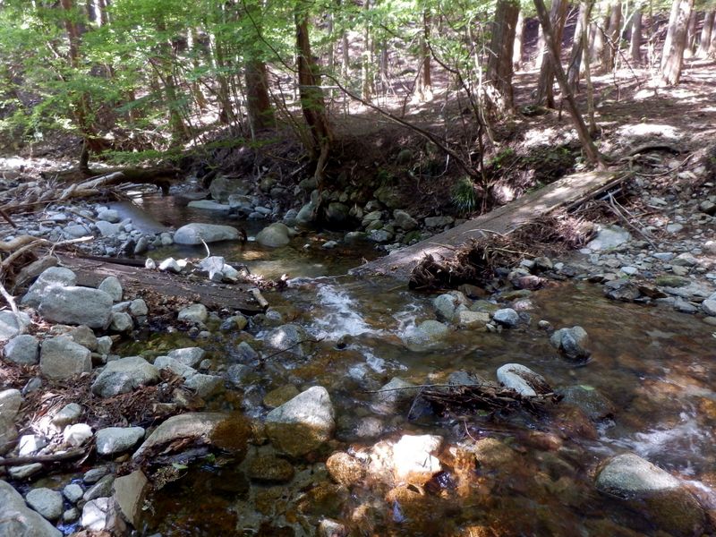 -- 折れた木橋。渡渉2回目。左岸→右岸。8:07