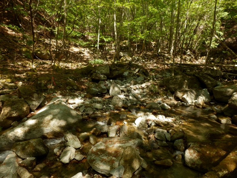 -- ピンクリボンを目標に、渡渉6回目。トヨミ沢左岸→右岸。9:27
