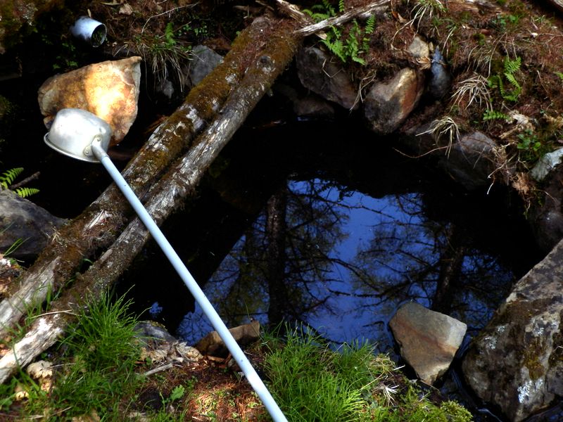 -- カラマツを映す鎮西ヶ池。12:38