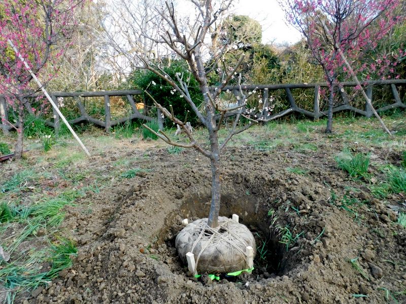 -- 地中に4本の白い杭が打たれている。
