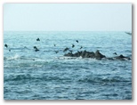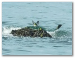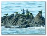 ヤマレコ ◆かつて丹沢山中でアオバトを見た。美しいハトだが、普段目にすることはない。ところが、大磯町の照ヶ崎海岸には、丹沢から集団で飛来するという。◆大磯町のウェブサイトにアオバトのページがある。それによると、7~8月が飛来のピーク。特に梅雨明け直後の晴天日に多く飛来し、日の出から午前10時頃までと夕方が見やすいとのこと。◆初電に乗って出発。飛来地の海岸に到着すると、すでに撮影者や釣り人たちが来ていた。撮影者は、デジスコ + 三脚が標準装備のようだ。◆アオバトの群れは波状的にやって来る。初めてアオバトの集団飛来が見えた瞬間、とても感激した。その後も、去っては来ては、の繰り返し。やがて午前8時半過ぎには飛来数が少なくなり、9時には撮影者たちもほとんどいなくなった。◆撮影した写真を帰宅後に拡大して見ると、100%がNG写真。せめて証拠写真になりそうなものを選んで掲載する。とはいえ、見ただけでも十分に満足だった。 ◎ 大磯駅 6:50 --- 7:08 照ヶ崎海岸 8:53 --- 9:03 大磯港西防波堤灯台 9:03 --- 9:15 謝恩碑 9:15 --- 9:25 地福寺 9:28 --- 9:31 大磯駅 全2時間41分 単独 ❀❀❀ ❢
