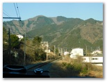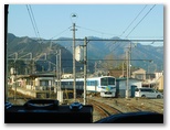 多くの人出を予想しましたが、御花畑駅で乗った三峰口行き電車は、ガラガラに空いていました。運転席の窓越しに、行く手の山々に視線を投じます。秩父御岳山と四阿屋山が見えるでしょうか? でも山容の脳内イメージを全く持っていなかった上、右へ左へとカーブする電車の窓から観たところで、何も判りませんでした。帰宅後にゆっくりと地図を見て、白久~三峰口間を走行中に撮影した、山腹に林道の白い線を持つ山が秩父御岳山だったことが、ようやく判りました。