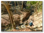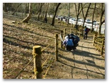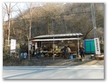 先頭の女性が途中まで登って、撤退を決断しました。よかった、よかった。私はここからつつじ新道を下ります。下り始めで出会った二人組から、とても滑りやすい道だったと聞きましたが、きょう履いてきた登山靴は斜面でのグリップ力が抜群。スタコラ下って、大堤バス停付近に下り立ちました。堂上の節分草園まで、小森川左岸の車道を少し歩きます。堂上バス停のちょっと先で堂上橋を渡ると、節分草園入口は直ぐでした。協力金300円を支払い、しおりをもらいます。