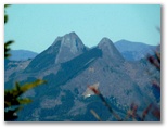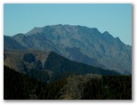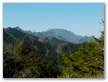 四阿屋山頂に到着しました。人が数名立つのがやっとの狭い山頂に、山頂標と方位盤と三等三角点石があります。でも、きょう最大の楽しみは、ここから望む両神山。くっきりと望めます。巨人の要塞とでも言えそうな、その荒々しい山容を間近に望み、胸が熱くなりました。故郷の山でもなく、日本の最高峰でもないのに、私にとって、このような情感を呼び起こす山は、そうそうありません。そして二子山の並び立つ鋭峰と合わせ、カメラと脳裏の記憶域に収めました。