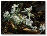 「雪が降ったよう」というのは、大げさではありませんでした。白い花が何万株も咲いて、保護地を埋め尽くしているのです。さっそくカメラを向けますが、どの花もみんな可愛いいので、どこから撮り始めたらいいか、わかりません。近くで見ると、セツブンソウは何とも上品、エレガントな花です。コンデジの限界に挑戦するつもりで、たくさんのショットを収めました。期待していなかったザゼンソウも10株ほど見つけました。ほくほくです。